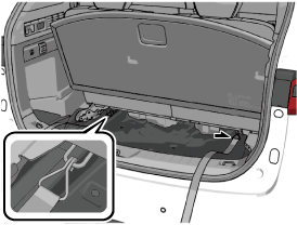 Place the flat tire in the luggage compartment so that it leans against the luggage board.