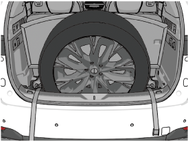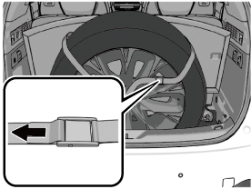 Secure the flat tire in the luggage compartment using the flat tire belt.