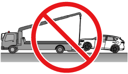 • Do not tow the vehicle pointed forward with driving wheels on the ground. This may cause internal damage to the transmission.