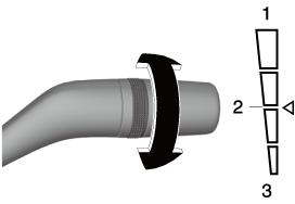 In the LO position, the windshield wipers operate at low speed. In the HI position, the wipers operate at high speed.