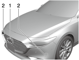 If strong force is applied to parts near the radar sensors, the direction of the radar sensor may become deviated and each system may not operate normally. Stop each system immediately and have the vehicle inspected by an Authorized Mazda Dealer.
