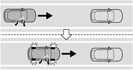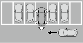 If there is a possibility of your vehicle colliding with a vehicle approaching from the rear sides, you are notified of possible danger by a screen display and a warning sound. Furthermore, if the possibility of a collision increases, brake control is performed to avoid collision or reduce damage in the event of a collision.