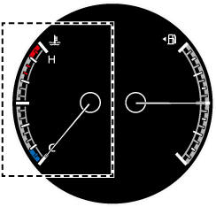 Displays the engine coolant temperature. The blue range of the gauge indicates that the engine coolant temperature is low, and the red range of the gauge indicates that the engine coolant temperature is high and overheating.
