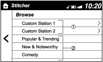 For details on Stitcher™ Radio, refer to “http://stitcher.com/”.