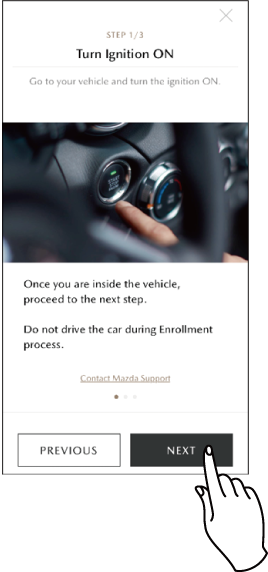 Get in your vehicle and switch the push button start / power switch ON, and then touchNEXT