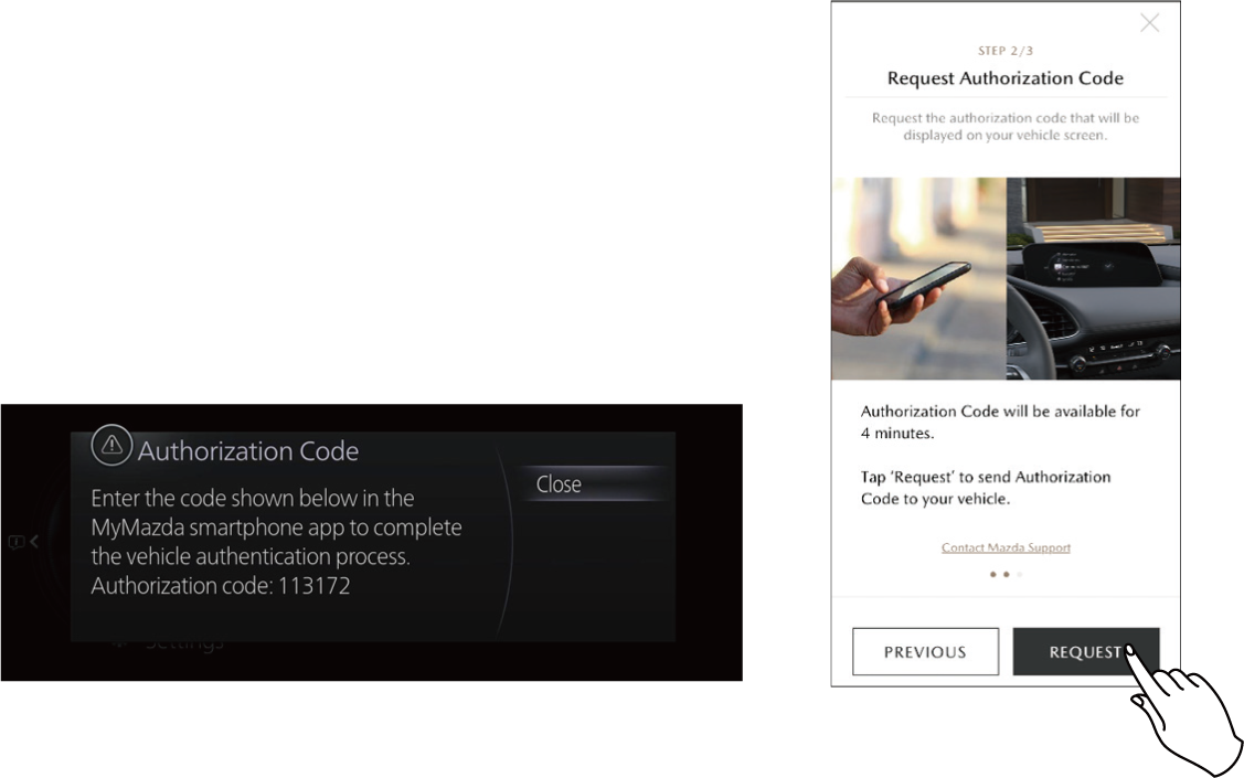 Touch REQUEST to display the 6-digit Authorization Code on the center display of the vehicle.