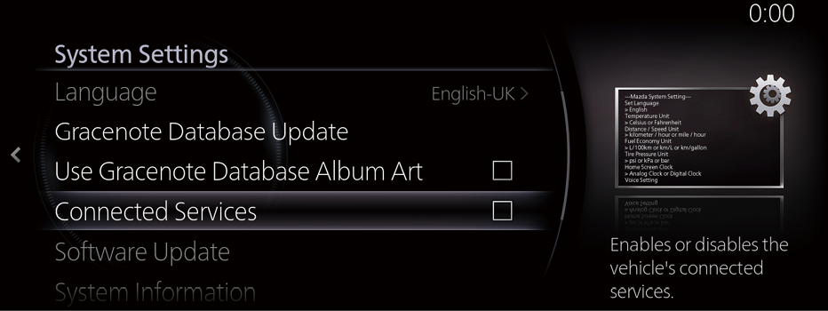 Select [Settings] from the Mazda Connect menu, and then select [System Settings].