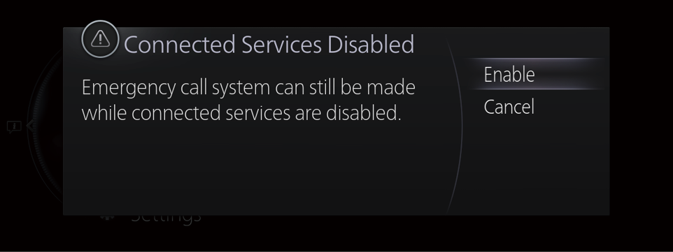 This mode disables the onboard communication unit temporarily to stop the vehicle’s data communication. Additionally, the disabled onboard communication unit can be enabled. Mazda Connect is used for making the setting. The screen display varies depending on the vehicle model.