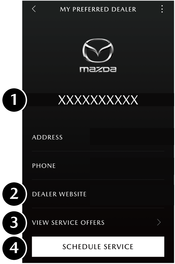 2 DEALER WEBSITE Displays the website of the Mazda dealership which has already been registered as the preferred dealer.
