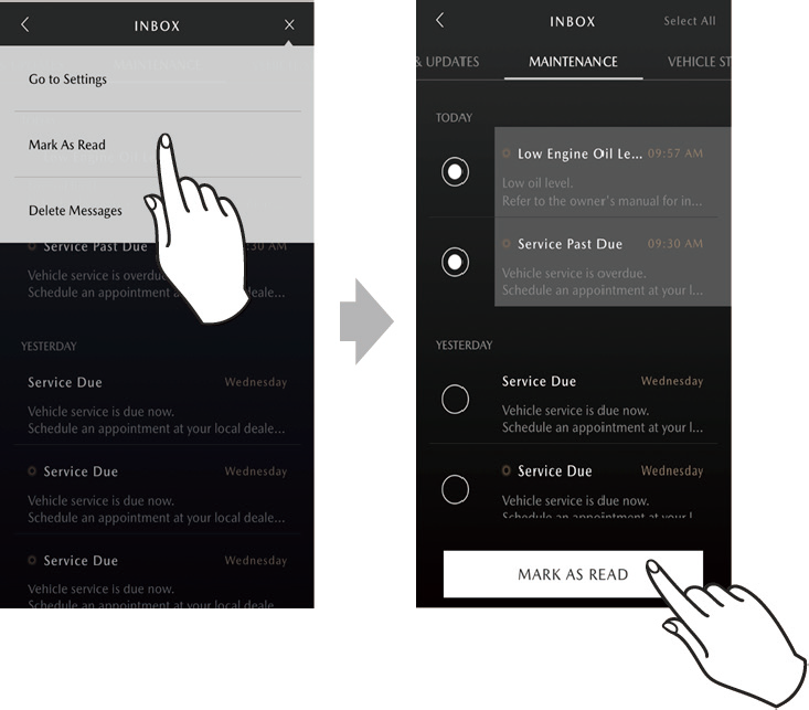 If you want to mark messages as read all at once, touch [Select All] in the upper right corner of the received list.