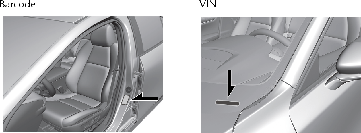 Refer to the illustrations for the barcode and VIN positions.