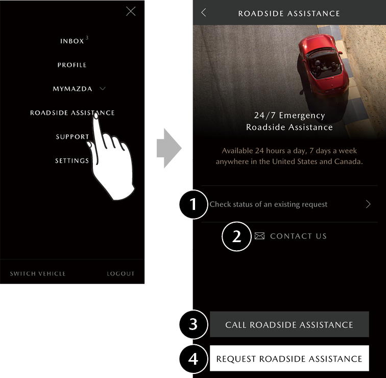 4 Request Roadside Assistance Contacts Roadside Assistance.