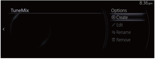 Displays the currently created TuneMix list. Select TuneMix Channel to begin playback. In addition, a TuneMix Channel can be created or deleted. For details, refer to TuneMix™. |