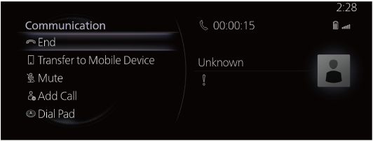 Transfers a call from a device (mobile phone) to hands-free. Communication between devices (mobile phone) can be switched to Bluetooth® Hands-Free. |