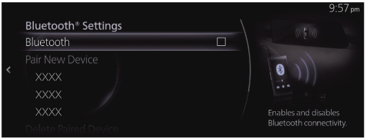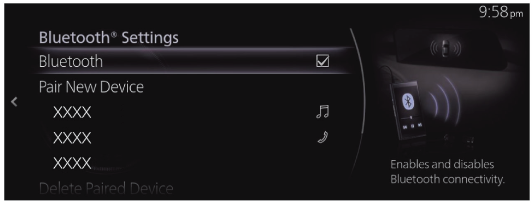 Select the Settings menu → Bluetooth → Device “Mazda”.