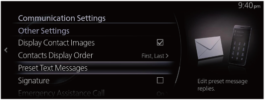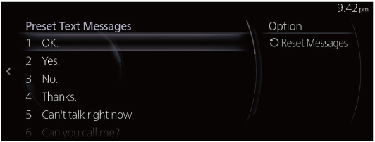 SMS (Short Message Service) messages received by the connected Bluetooth® device can be downloaded, displayed on the center display, and read out loud. In addition, preset replies can also be made to calls and messages in the received messages.