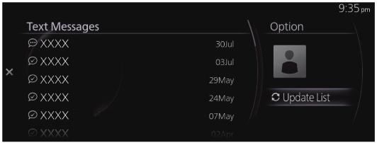 When “Update List” is selected, the messages are downloaded from your Bluetooth® device.